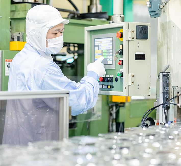 私は食品トレイの製造工程を担当しています。材料搬入から成型、プレスまでの流れを受け持つんです。一見単純そうですが、実はそうでもないんですよ。