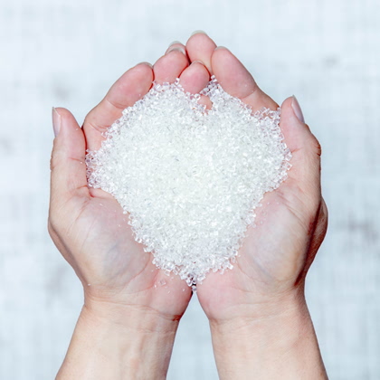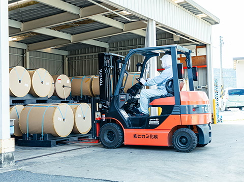 ヒカミ化成では、環境に配慮し、成形品から発生する端材を溶かしてペレット状にし、このペレットから新たなプラスチックフィルムを生成する等、資源の有効活用を実現しています。