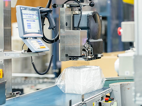 原料となるプラスチックフィルムを搬入、機械へセットする