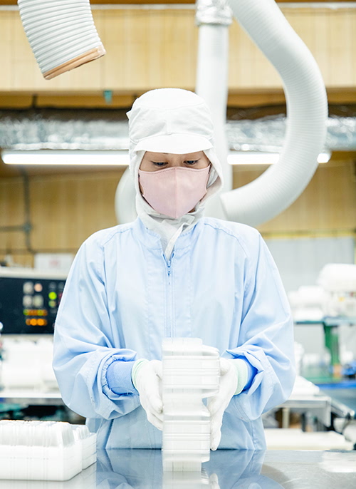 ヒカミ化成は、プラスチック製の食品容器を製造する会社です。スーパーで見かけるお惣菜やおにぎり、野菜、おつまみなどを入れる多種多様の食品容器を生産しています。